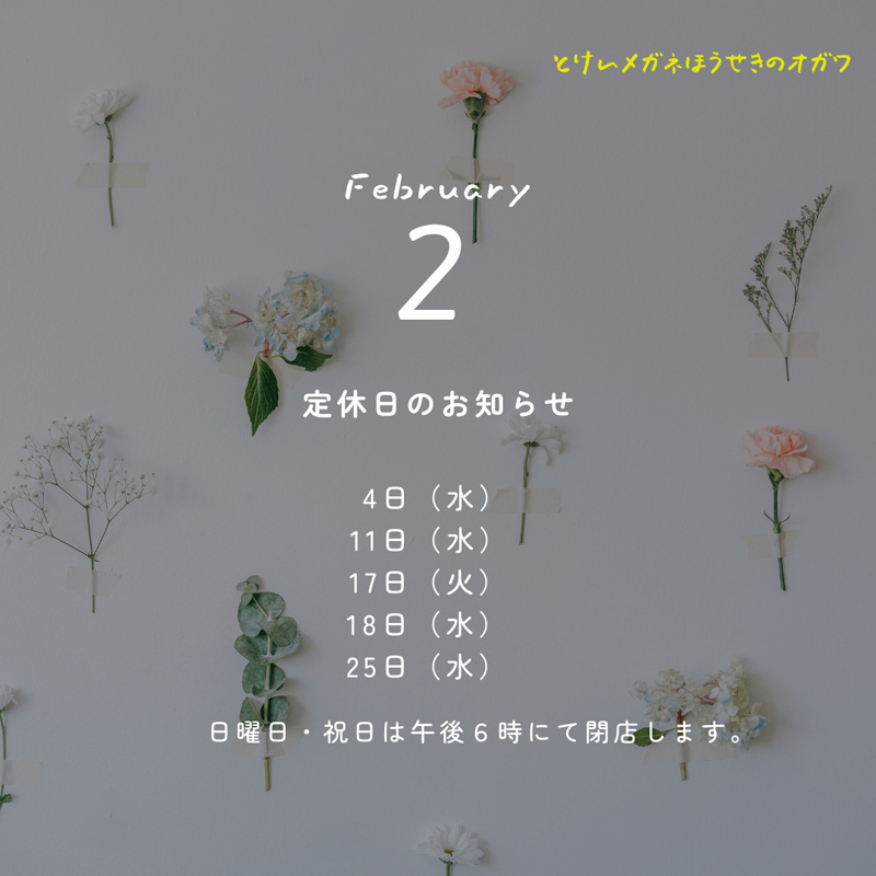 2月4日・11日・17日・18日・25日 が定休日です。