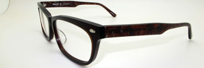 大きく、力強く、がっしりした質感と流れるような美しいフォルムを持つウェリントン型大きいメガネで、両肩の部分に飾り鋲がついたクラシカルなデザインです。